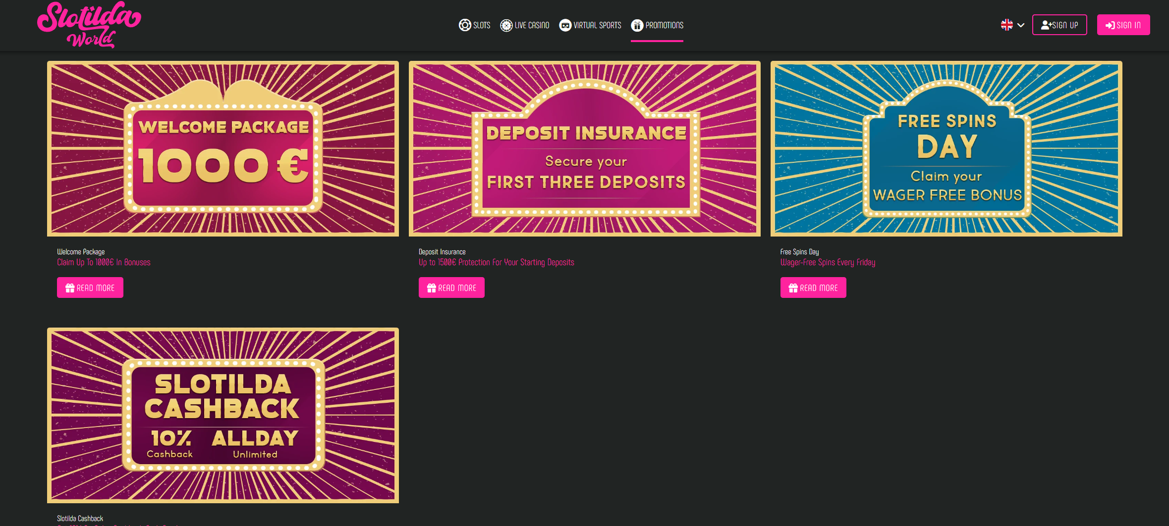The cherry on top? A wagering requirement of just 40X. Plus, if Lady Luck isn’t on your side, Slotilda offers deposit insurance. This means you can get up to 20% of your first deposit back (up to 500€) and 15% on your second and third deposits.