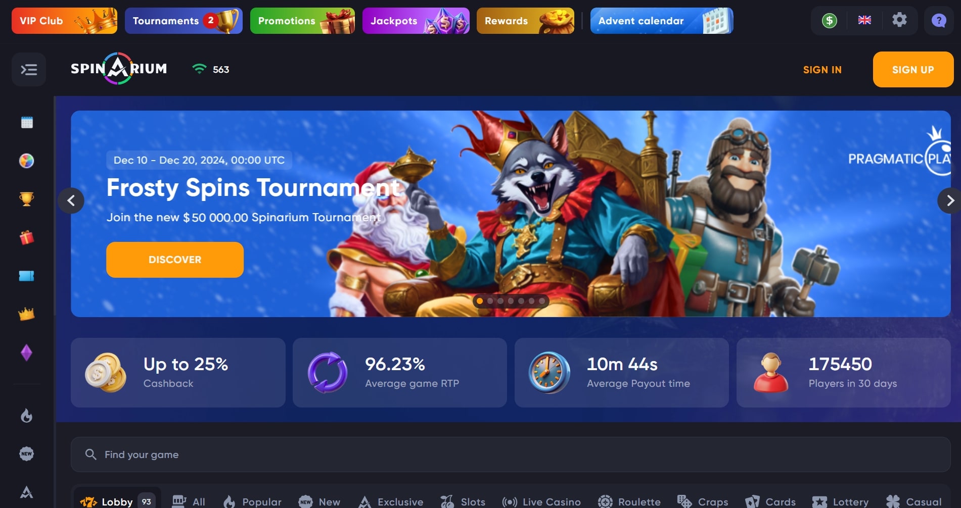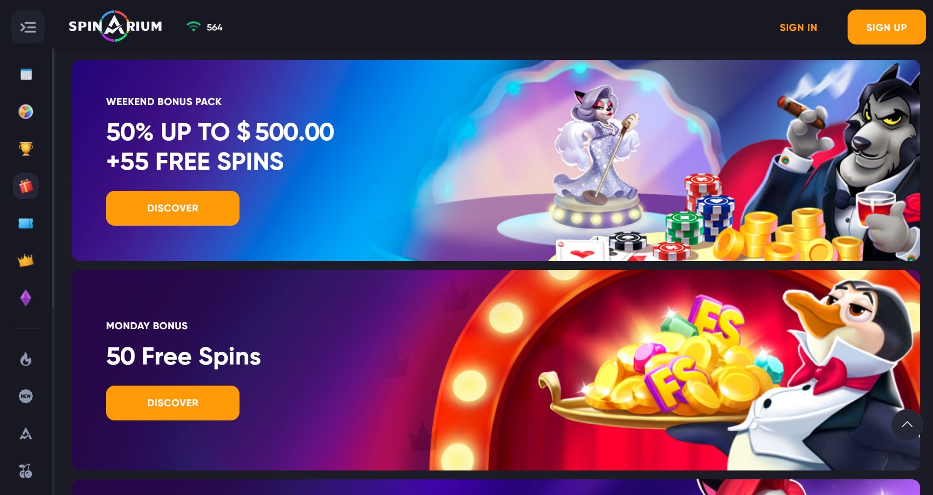 - Exclusive in-house games: Spinarium offers unique, proprietary titles that can only be played on their platform.